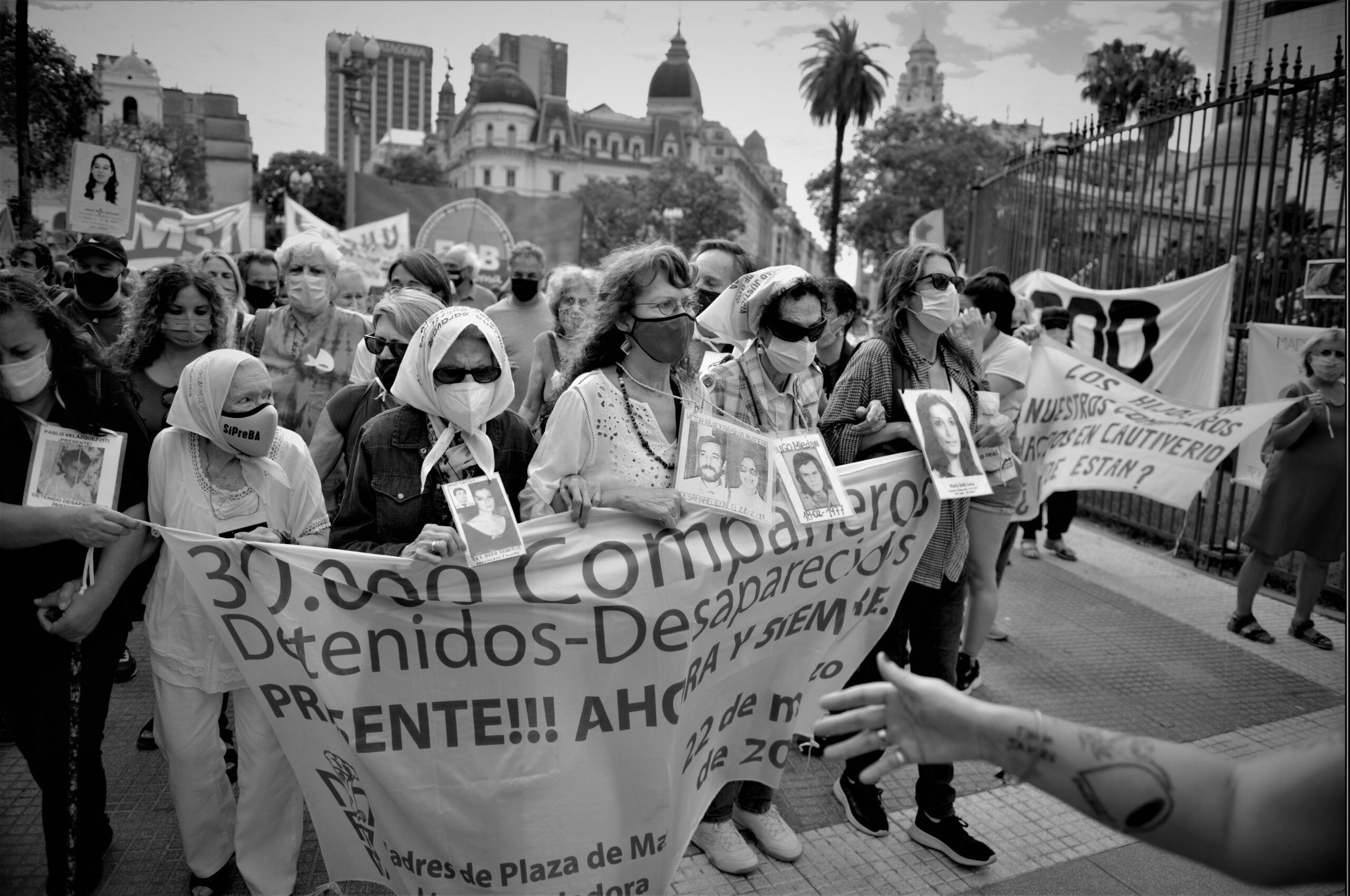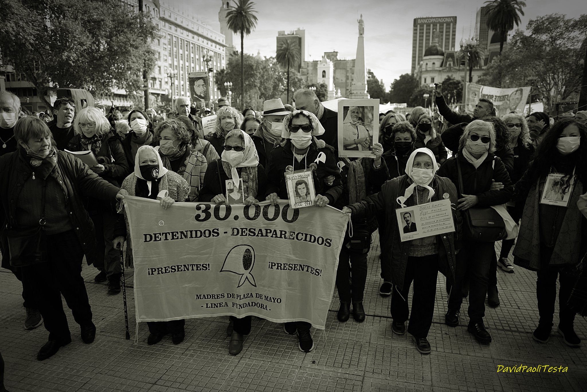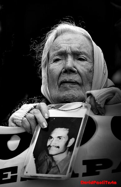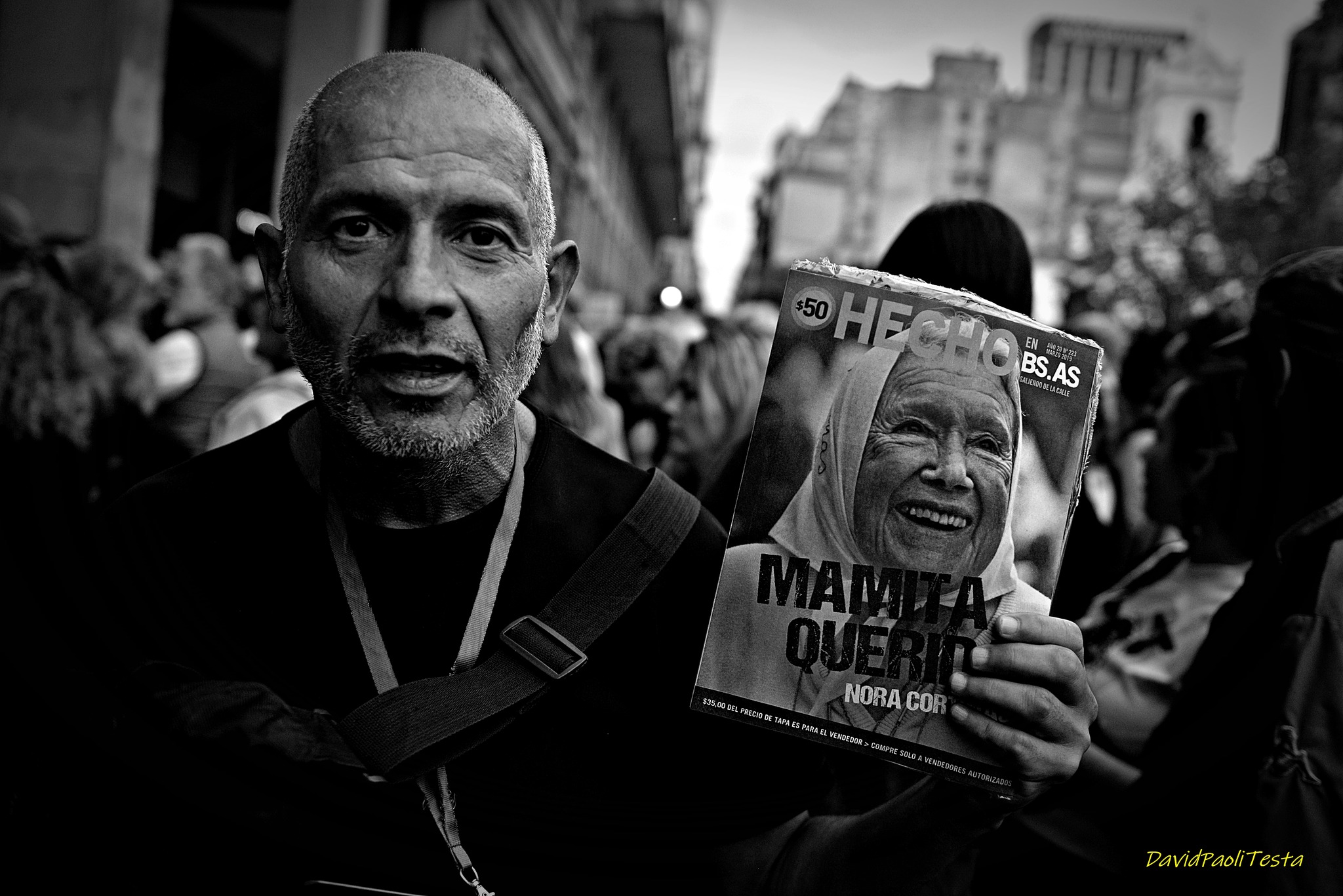 Soy hijo de fotógrafo, aprendí desde muy temprano el oficio. Pero como suele suceder intenté evadir los mandatos paternos y fue recién a finales de la década del ’70, en el momento más cruento de la última dictadura argentina, cuando empecé a militar en Organismos de Derechos Humanos, acompañando a Familiares y Madres de Plaza de Mayo, que decidí ejercer como fotógrafo con el objetivo de visibilizar las denuncias. Paralelamente a mi militancia, realicé muestras, di charlas en colegios sobre fotoperiodismo político y durante más de treinta años, publiqué en diversos medios. Mi amor por las Madres me impulsó a fotografiarlas y en los últimos años, mi cercanía a Norita me hizo retratarla a ella en particular. A pesar de tanto dolor, con su dulzura logró que lo cotidiano se volviera mágico. Muchas gracias a las compañeras y compañeros que siempre estuvieron con las Madres y conmigo. Y en especial, a quien en todos estos años sostuvo mi mirada…