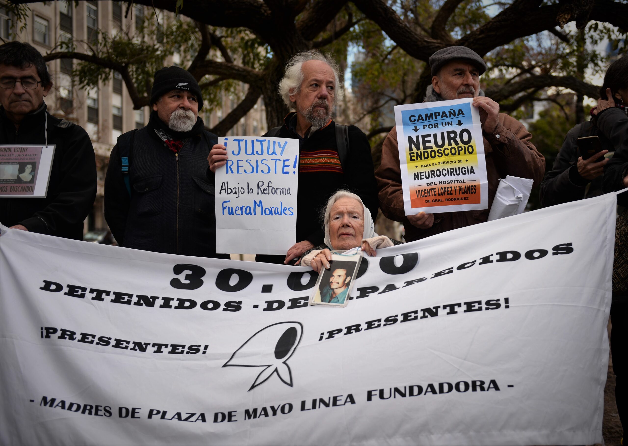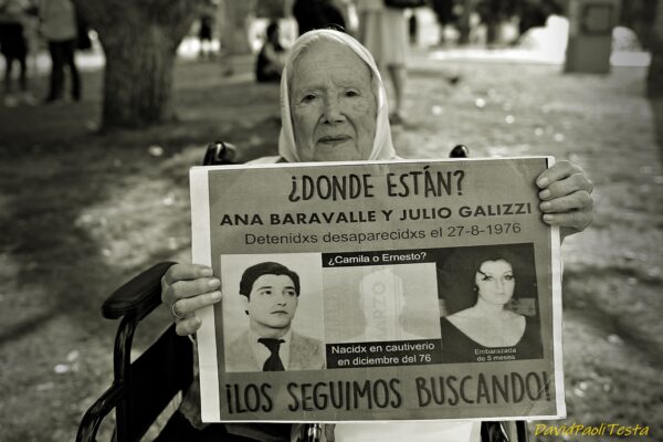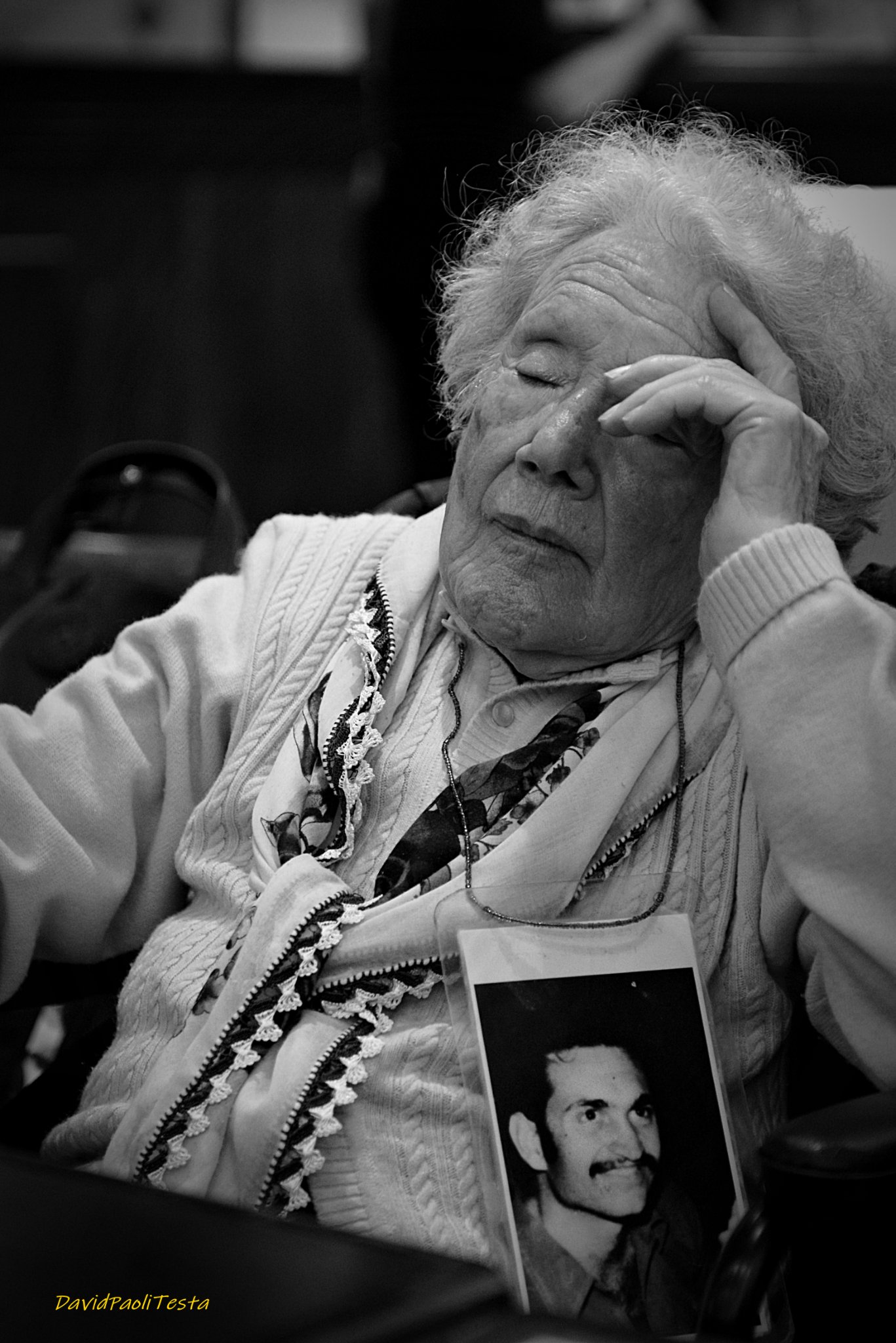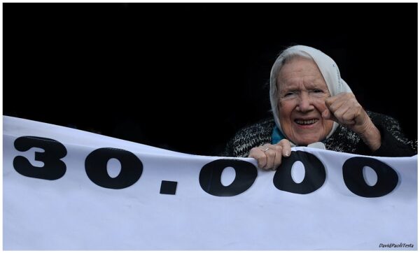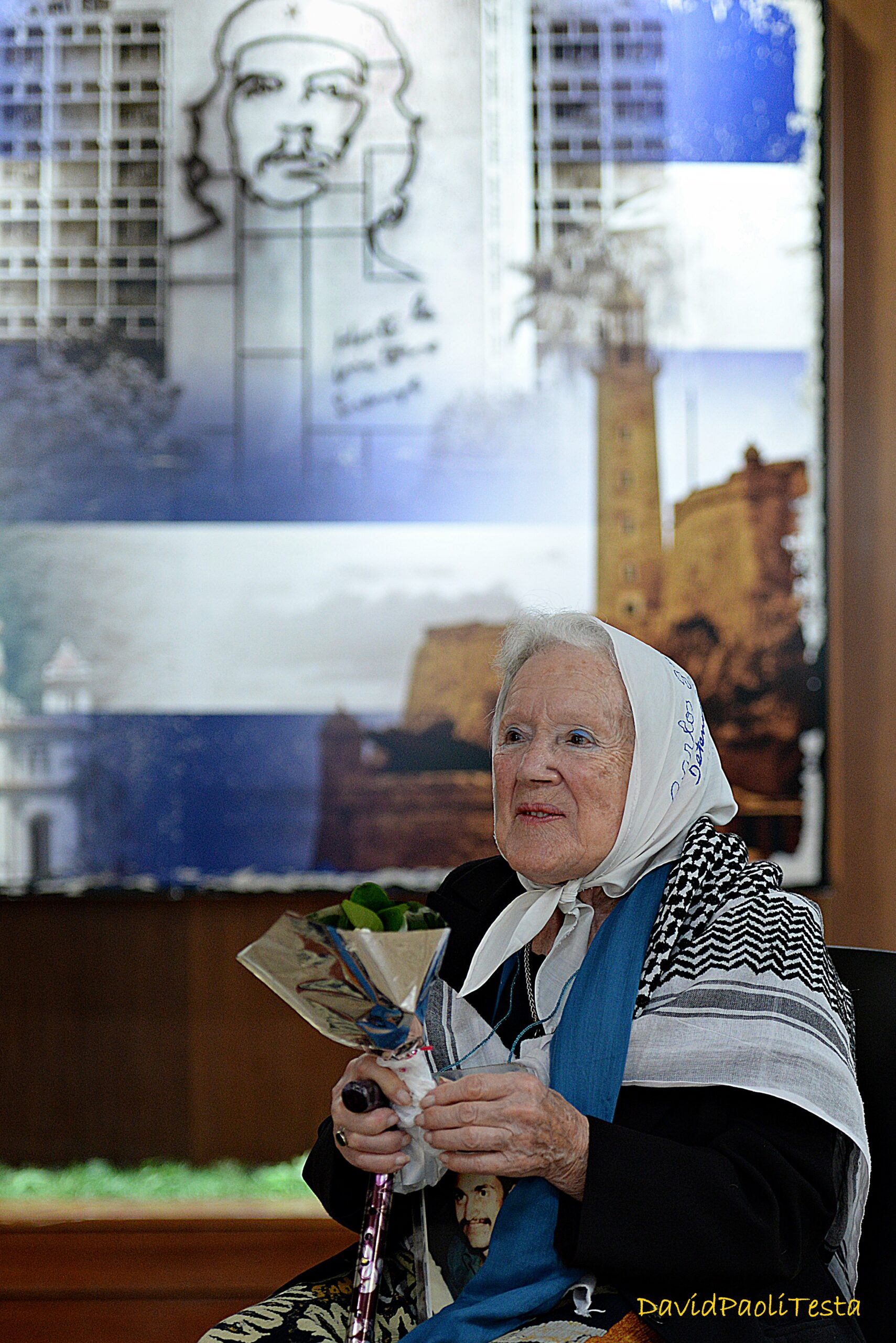 ¿Por qué una muestra fotográfica de Nora Cortiñas?. Decía R. Walsh: Las clases dominantes siempre han procurado que los trabajadores no tengamos historia, no tengamos doctrina, no tengamos héroes, ni mártires. Cada lucha debe empezar de nuevo, separada de las luchas anteriores. La experiencia colectiva se pierde, las lecciones se olvidan. La historia aparece así como propiedad privada cuyos dueños son los dueños de todas las cosas…. Este es un pequeño ejercicio para no perder La Memoria. Norita dejó de ser un ama de casa, que con sus hermanas cosía para afuera, en el mismo momento en el que secuestraron a su hijo Carlos Gustavo Cortiñas, de 24 años, el 15 de abril de 1974. Si la buscamos en Google aparece primero como militante de DDHH antes que como Madre de Plaza de Mayo, ella entendió perfecta y rápidamente que el enemigo era el capitalismo y todas sus máscaras partidarias, que una lucha no podía estar escindida de las otras. Por eso la vemos, en estas humildes fotos, encabezando la pelea por el agua, contra Mekorot, por la legalización del aborto, de la marihuana, por los mapuche, contra los travesticidios… pero también comprendió el Internacionalismo en las luchas y se la puede encontrar defendiendo a Palestina del sionismo, a Ecuador, a los presos políticos de Paraguay, viajando a Chiapas, Colombia, Venezuela, Bélgica donde recibió un Doctorado Honoris Causa , Japón, Kurdistán, Honduras, el Sahara Occidental, Haití…Suelen decirnos que la generación del hijo de Norita, de mis padres, de los 30.000 fue derrotada, que sus sueño de un mundo mejor de canceló. El simple hecho de que ustedes estén ahí, tal vez pensando que no todo se compra o se vende, nos demuestra que no fue así.